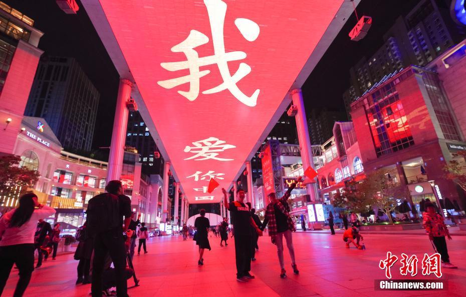 9月30日晚,北京世贸天阶巨型天幕上显示“我爱你中国”字样,庆祝国庆节到来。中新社记者 贾天勇 摄