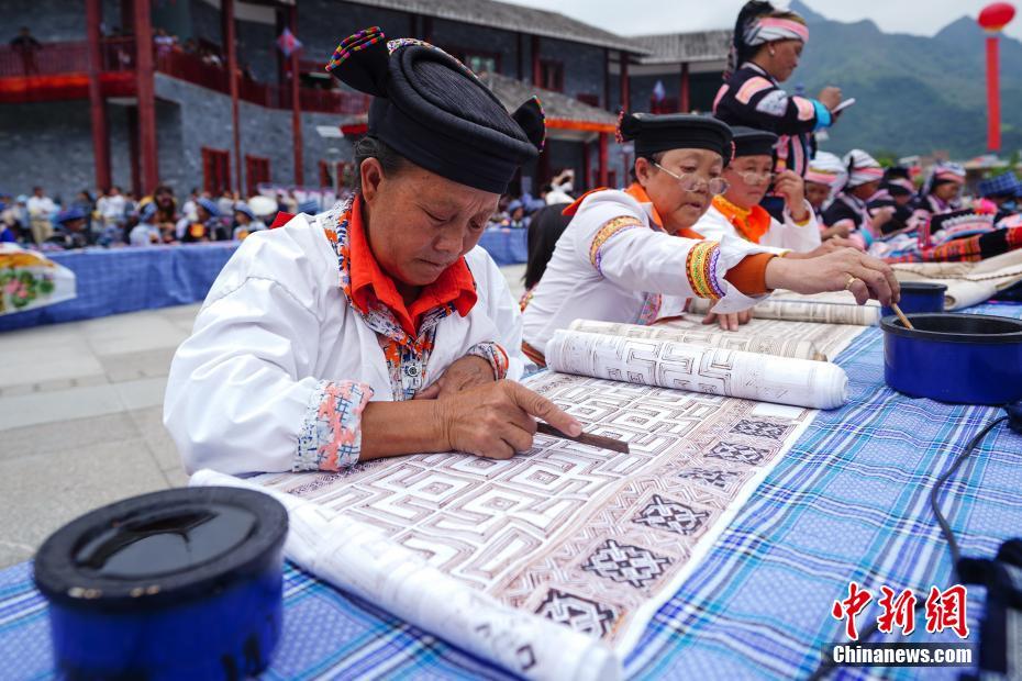 苗族蜡染艺人在比赛中。中新社记者 贺俊怡 摄