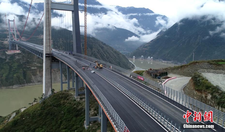 有“川藏第一桥”之称的雅康高速泸定大渡河兴康特大桥桥面施工日前已结束,具备通车能力。雅康高速泸康段建成通车后,成都至康定行车时间缩短至4个小时左右。图为10月4日拍摄的兴康特大桥桥面。中新社记者 刘忠俊 摄