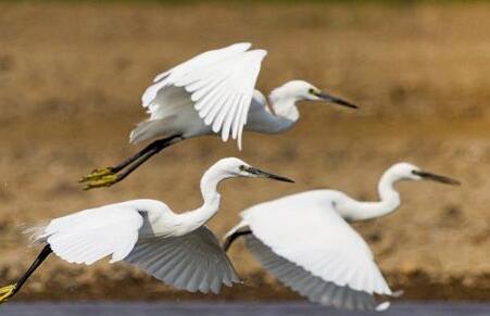 10月4日,在江西鄱阳湖都昌马影湖水域拍摄的白鹭。金秋十月,生活在江西鄱阳湖区的白鹭沐浴秋色,湿地上成群的白鹭成为一道靓丽的风景。中新社发 傅建斌 摄
