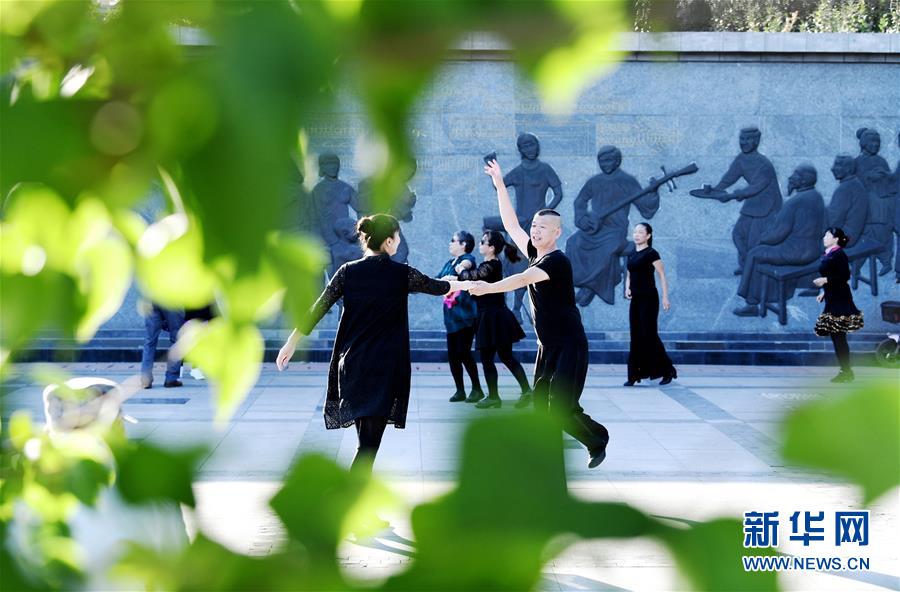 10月5日,市民在文园内跳舞休闲。 位于河北省唐山市乐亭县县城北部的文园曾经是一片堆积建筑垃圾的废弃荒地。近年来,乐亭县按照“景观秀美、绿量充足、传承文脉、便利休闲”的规划定位,通过开挖园湖、遍植树木、修建具有浓郁地方特色的民俗文化景观,把过去的废弃荒地建成了一座风光秀美的生态文化公园,成为市民和游客休闲游玩的好去处。 新华社记者 牟宇 摄