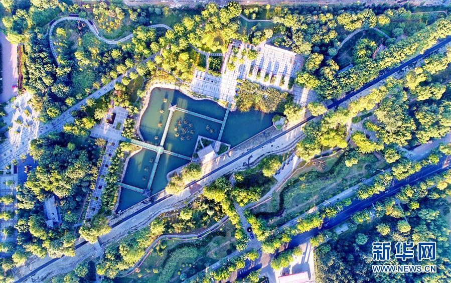 这是10月5日无人机拍摄的文园。 位于河北省唐山市乐亭县县城北部的文园曾经是一片堆积建筑垃圾的废弃荒地。近年来,乐亭县按照“景观秀美、绿量充足、传承文脉、便利休闲”的规划定位,通过开挖园湖、遍植树木、修建具有浓郁地方特色的民俗文化景观,把过去的废弃荒地建成了一座风光秀美的生态文化公园,成为市民和游客休闲游玩的好去处。 新华社记者 牟宇 摄