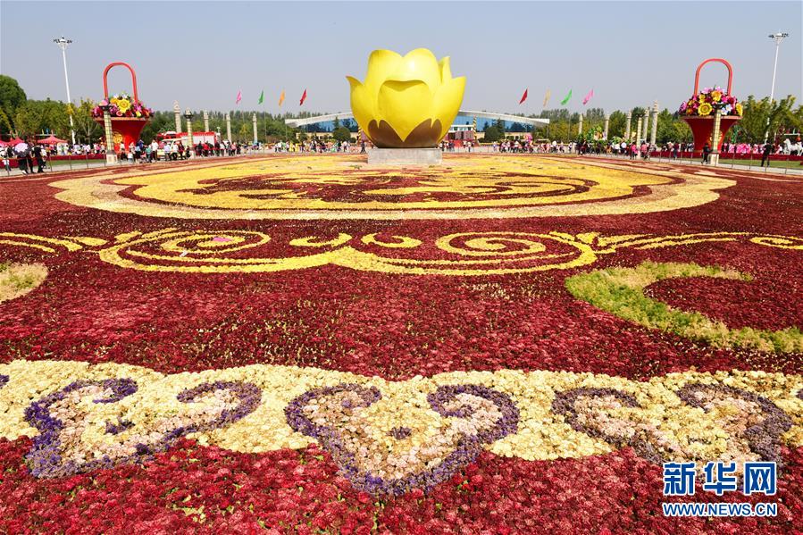 这是鄢陵县花博园内设置的大型花坛(10月4日摄)。