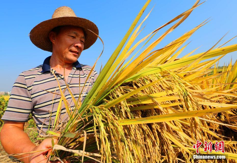 10月6日,金秋十月,在江西省泰和县万合镇陂溪村金色田野上,农民在收割水稻。 邓和平 摄