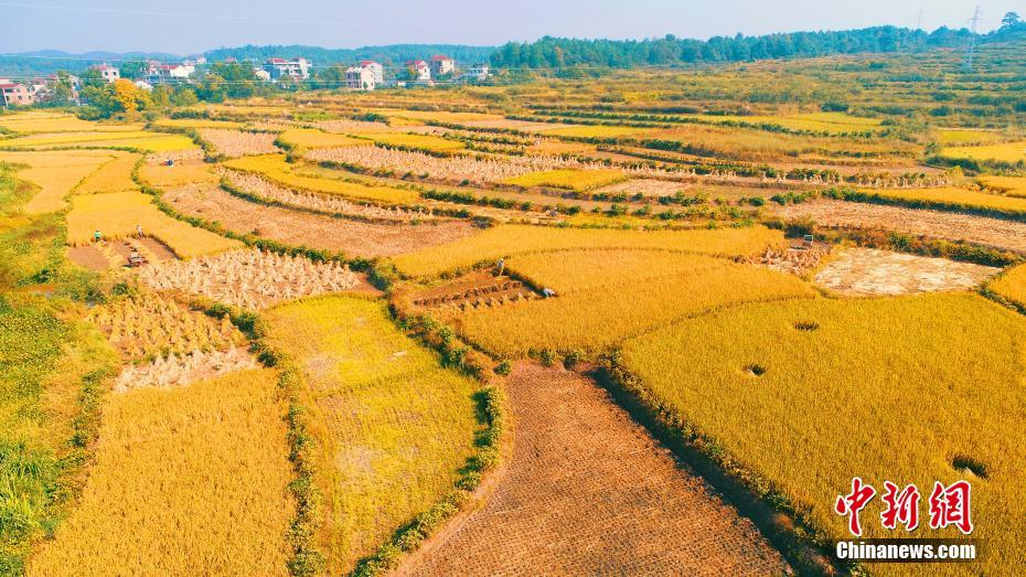航拍下的乡村稻田一片金黄。 邓和平 摄