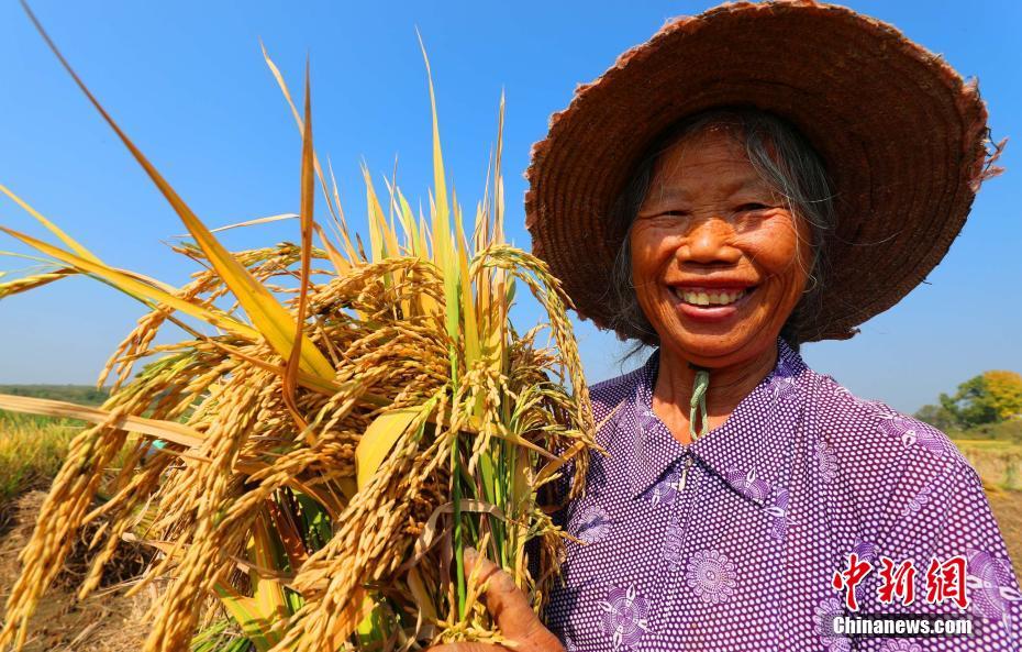 农民在收割水稻,收获丰收的喜悦。 邓和平 摄