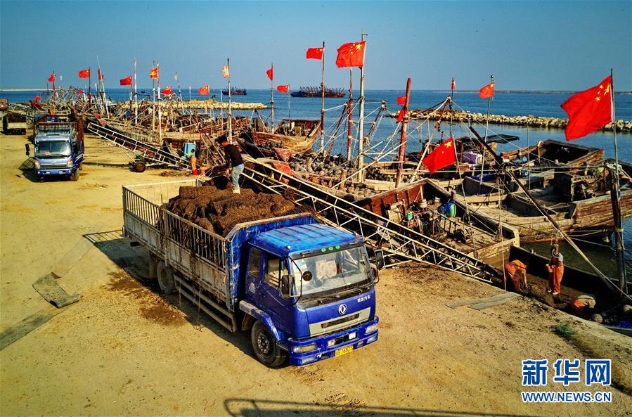 10月8日,在昌黎县茹荷镇一处码头,养殖户将收获的扇贝卸下船。 近年来,河北省昌黎县为促进扇贝养殖可持续发展,通过建设海洋牧场、限制无尽捕捞、将扇贝养殖台筏由浅海海域向深海海域疏散等一系列措施,在利于海洋环境恢复的同时,取得良好经济效益。据介绍,该县今年扇贝养殖面积约45万亩,预计扇贝产量达18万吨,产值8亿多元。 新华社记者杨世尧摄