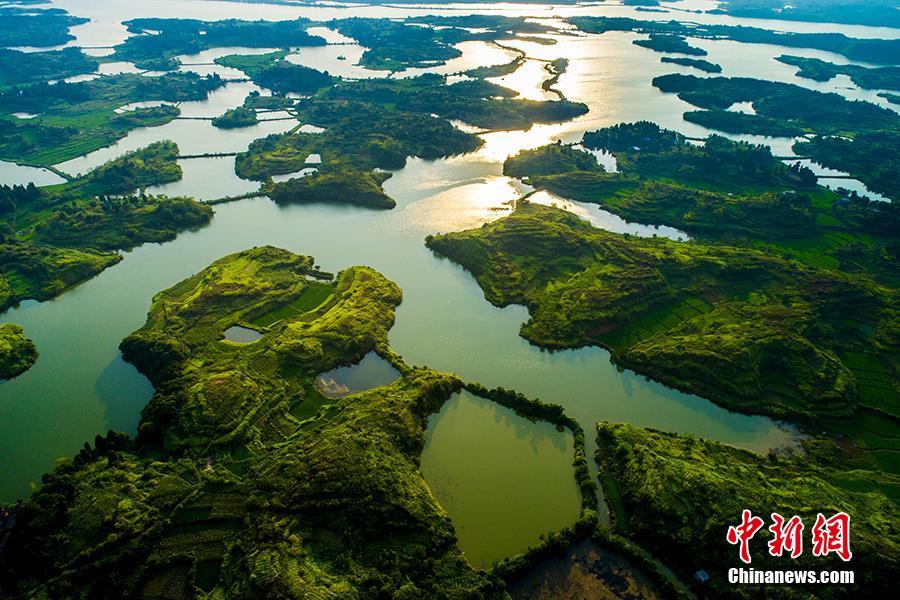 航拍湖南舂陵国家湿地公园 山环水绕美若画卷