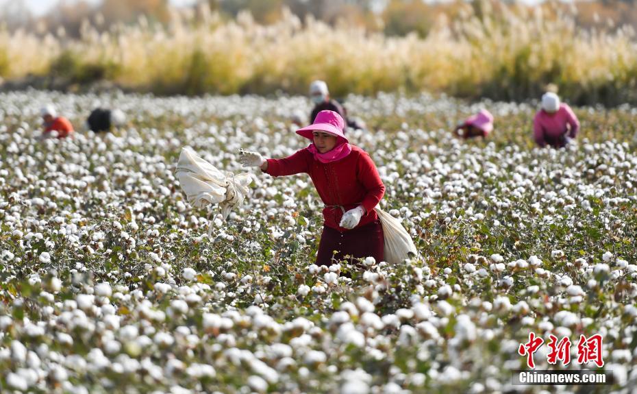 10月10日,被誉为“中国长绒棉之乡”的新疆阿瓦提县丰收三场,棉农正在棉田中采摘棉花。2018年,新疆棉花种植面积达到3700多万亩,占全国棉花种植面积的80%。9月中下旬天山南北进入棉花采摘期,目前正是新疆各地棉花采收最忙时节。中新社记者 刘新 摄