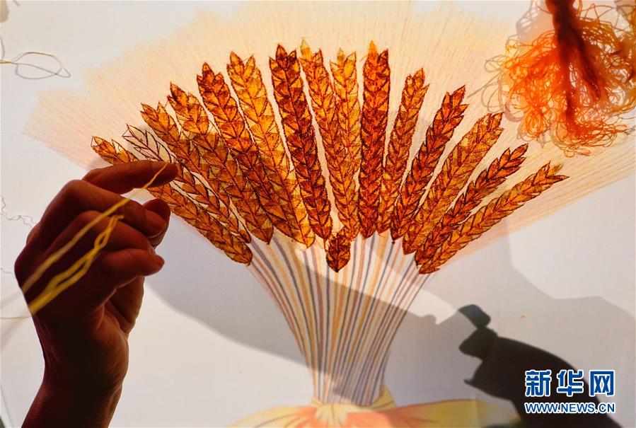 10月11日,工作人员在展示撒拉族刺绣工艺。 新华社记者 邢广利 摄
