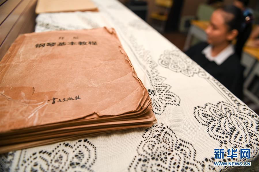 10月10日,在安庆市特殊教育学校音乐教室里,张晨给盲生们上音乐课。新华社记者张端摄