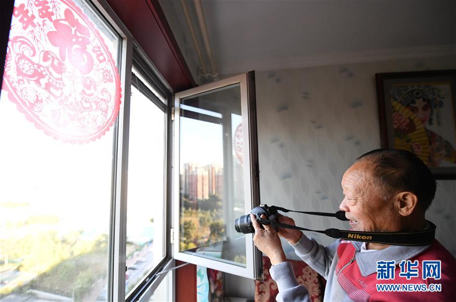 姜锡山老人在家中拍摄嘉囿城市休闲公园(10月11日摄)。 新华社记者 张晨霖 摄
