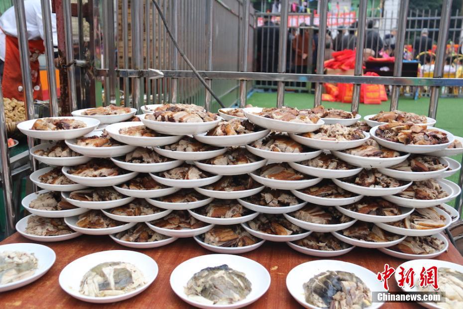 为千人坝坝宴准备的丰富菜品。杨尚威 摄