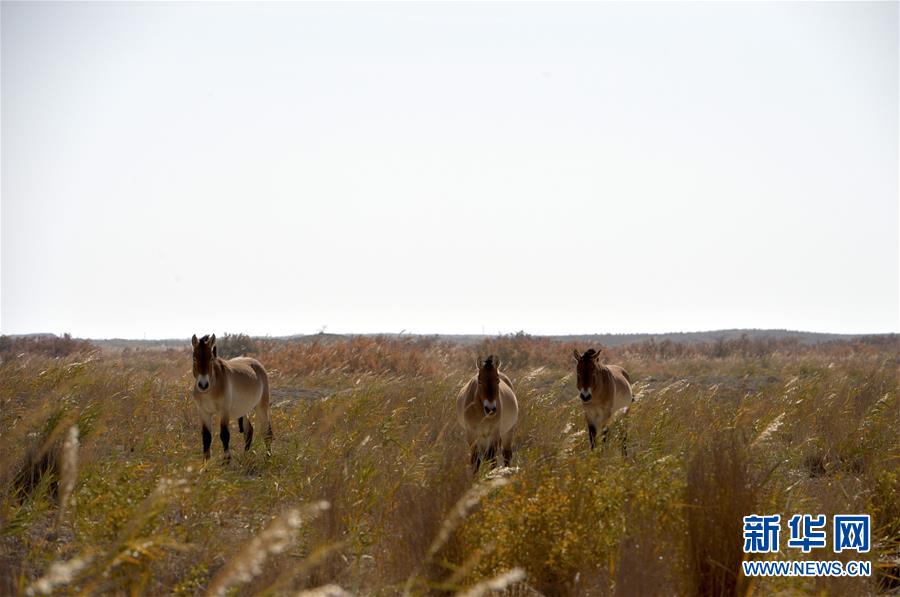 这是10月16日在敦煌西湖国家级自然保护区拍摄的普氏野马。 新华社记者 胡伟杰 摄