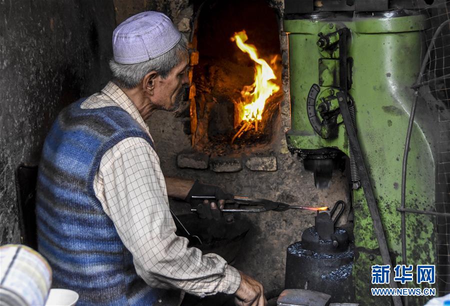 10月16日,一位喀什老城手工艺人在制作马蹄铁。 深秋时节,新疆喀什气候宜人,居民与游客在老城内悠闲享受秋日时光。 新华社记者 李志浩 摄
