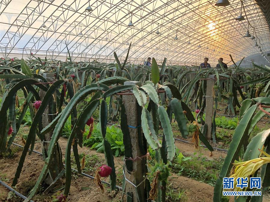 10月16日,工人在河北省平山县泓润庄园大棚里管理火龙果。新华社记者 赵丹惠 摄