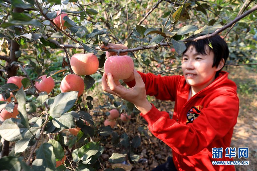10月16日,工人在河北省平山县一家农业发展公司的苹果种植基地采收苹果。该公司吸收贫困群众就业,助力百姓增收。 新华社记者 赵丹惠 摄