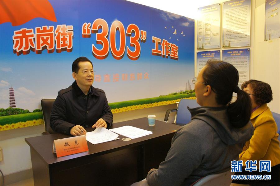 广州市海珠区赤岗街道党工委书记赵虎(左)在与群众交流(资料照片)。 他拥有博士学历,却甘愿扎根街道一线,事无巨细地为百姓排忧解难;面对复杂的基层矛盾,他迎难而上、冲在一线。他创立的“红房子”城市党建阵地,成为基层党建领域的“网红”品牌。 他叫赵虎,广州市海珠区赤岗街道党工委书记。 新华社发
