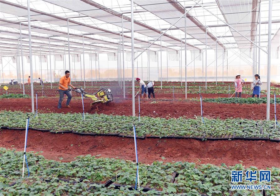 10月16日,砚山县稼依镇大稼依社区的农民在水果育苗种植基地劳作。云南省文山壮族苗族自治州砚山县稼依镇大力发展高原特色产业,成立专业种植合作社等18个经营主体,以辣椒、蔬菜、经济林果种植等5个产业扶贫项目带动农民脱贫增收。 新华社记者杨宗友摄