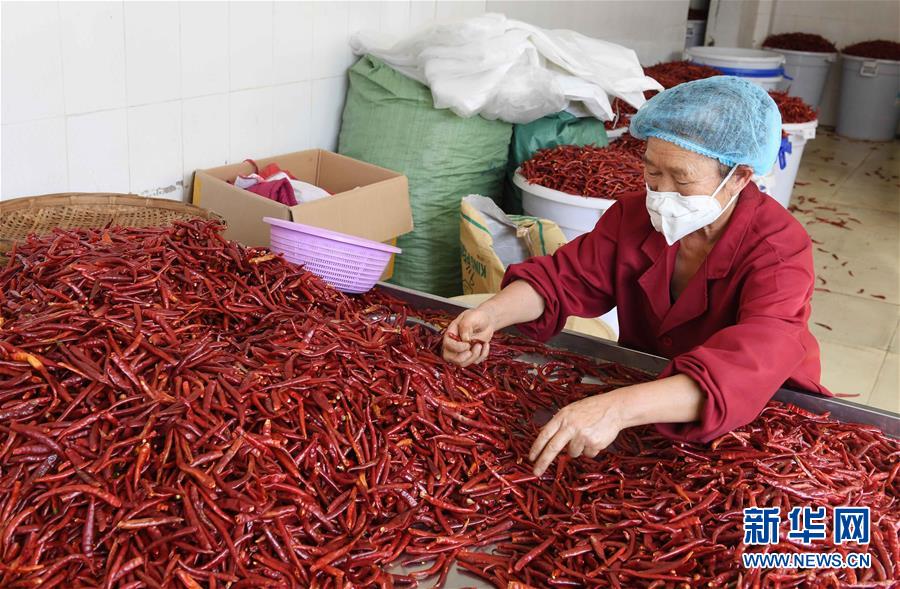 10月16日,砚山县稼依镇大稼依社区的农妇在整理辣椒。新华社记者杨宗友摄
