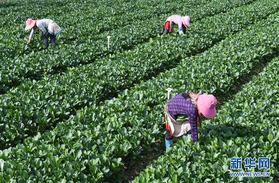 10月16日,砚山县稼依镇新寨村的农妇在蔬菜种植基地收菜。新华社记者杨宗友摄