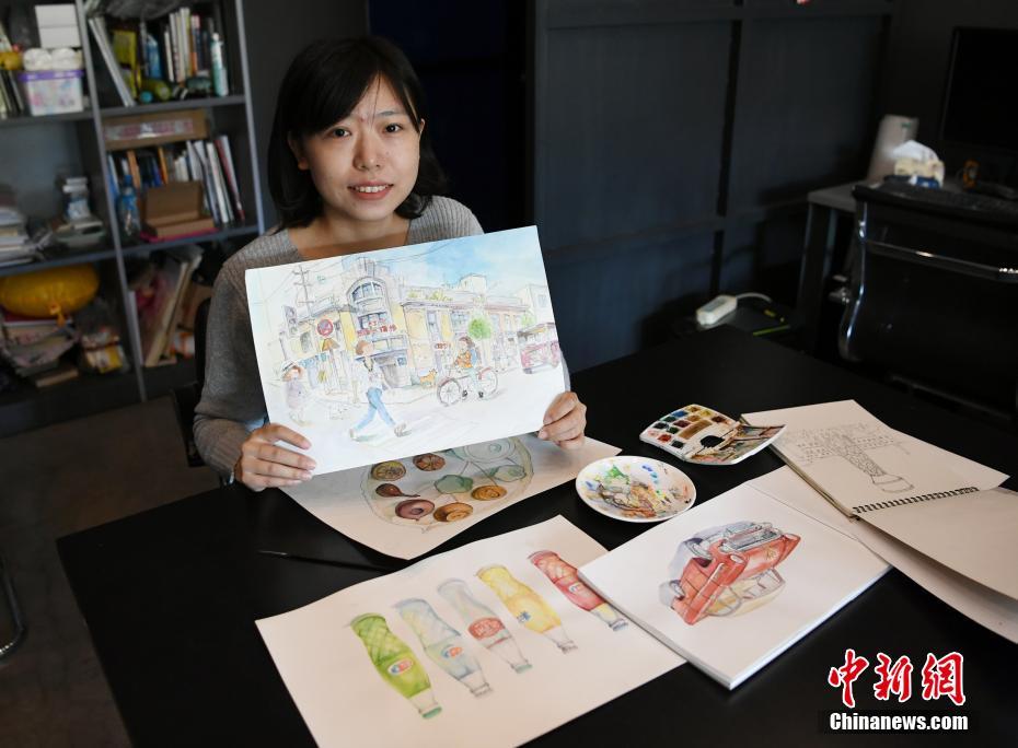 10月18日,彭朔在她的办公室展示自己创作的作品。彭朔是吉林艺术学院新媒体学院数字娱乐专业教师,因为对自己的家乡有着深厚感情,三年前,她带领学生团队开始创作漫画绘本——《漫绘长春》。目前,彭朔和她的学生们已经完成八十余张作品,内容包含长春的文化旅游景区、特色美食等。彭朔表示,待《漫绘长春》全部画完后,将正式出版发行,让更多的人了解长春。 中新社记者 张瑶 摄