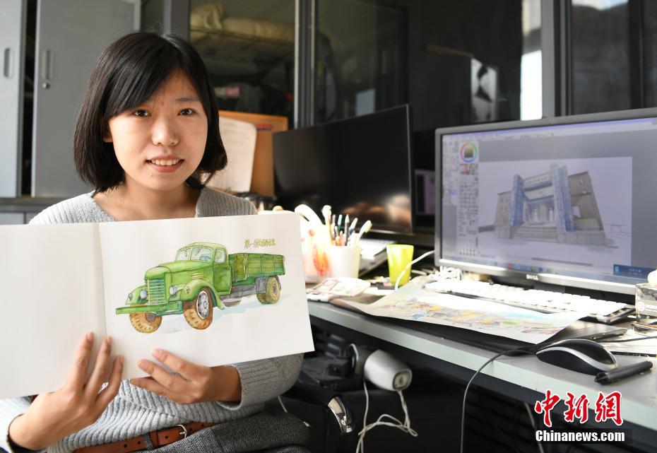 10月18日,彭朔在她的办公室展示创作的作品。彭朔是吉林艺术学院新媒体学院数字娱乐专业教师,因为对自己的家乡有着深厚感情,三年前,她带领学生团队开始创作漫画绘本——《漫绘长春》。目前,彭朔和她的学生们已经完成八十余张作品,内容包含长春的文化旅游景区、特色美食等。彭朔表示,待《漫绘长春》全部画完后,将正式出版发行,让更多的人了解长春。 中新社记者 张瑶 摄