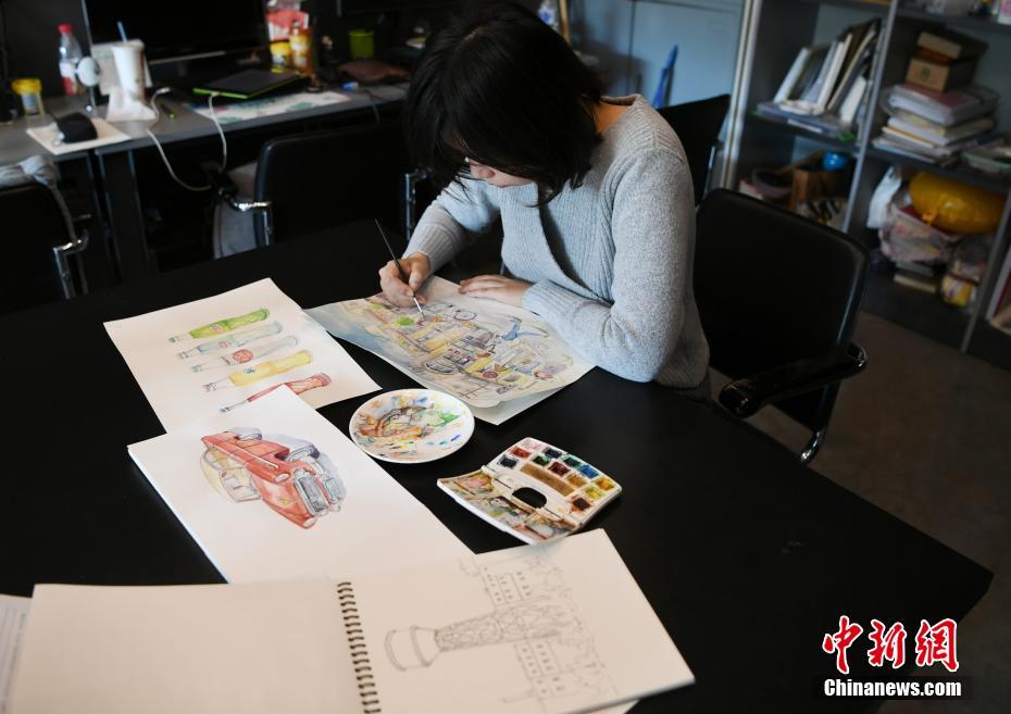10月18日,彭朔正在她的办公室创作作品。彭朔是吉林艺术学院新媒体学院数字娱乐专业教师,因为对自己的家乡有着深厚感情,三年前,她带领学生团队开始创作漫画绘本——《漫绘长春》。目前,彭朔和她的学生们已经完成八十余张作品,内容包含长春的文化旅游景区、特色美食等。彭朔表示,待《漫绘长春》全部画完后,将正式出版发行,让更多的人了解长春。 中新社记者 张瑶 摄