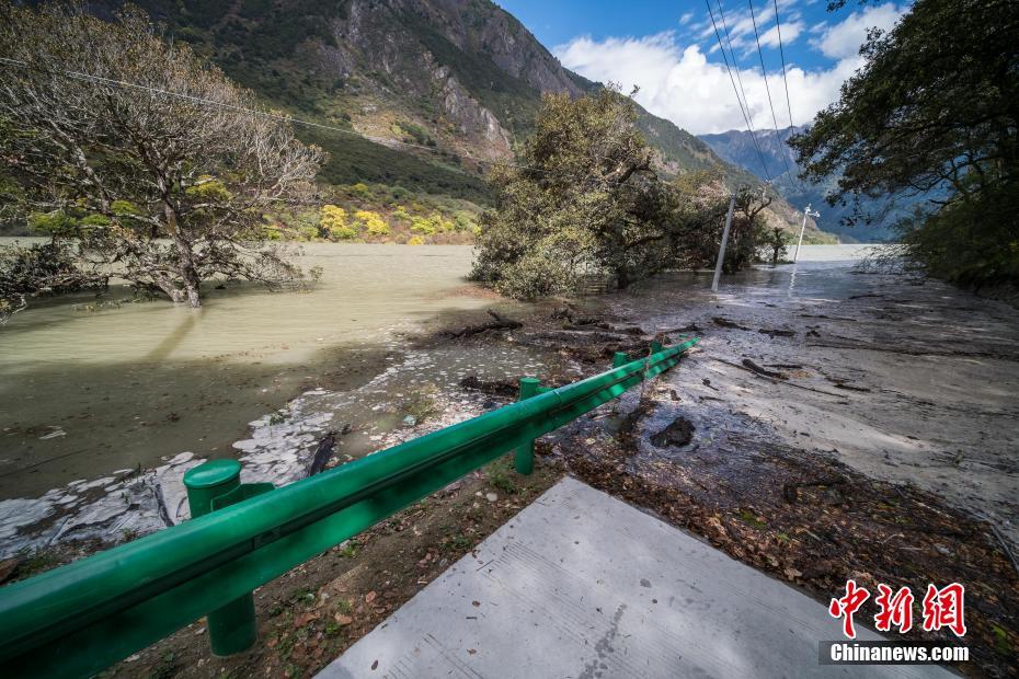 10月18日,通往西藏林芝米林县加拉村的道路被水淹没中断。中新社记者 何蓬磊 摄
