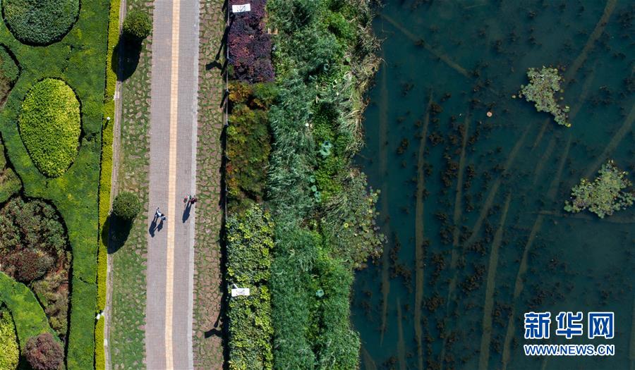 这是昆明滇池边的生态湿地景色(10月18日无人机拍摄)。新华社记者 胡超 摄