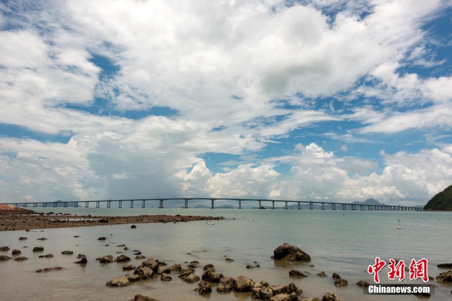 港珠澳大桥管理局10月19日晚发布消息称,港珠澳大桥将于2018年10月24日上午9时正式通车。港珠澳大桥全长55公里,集桥、岛、隧于一体,是世界最长的跨海大桥。图为从香港大澳眺望港珠澳大桥香港连接线。中新社记者 张炜 摄