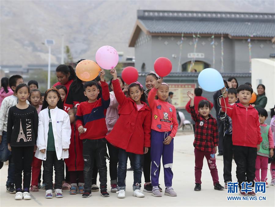10月20日,迁入新居的下岸村孩子们合影。 新华社记者 杨世尧 摄