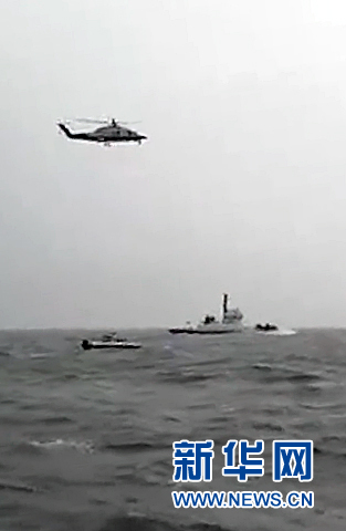 图为事故救援现场(10月21日摄,手机视频截图)。 记者从辽宁省葫芦岛市委宣传部最新获悉,10月21日3时许,在葫芦岛市绥中县三道岗附近海域,1艘证照不全且非法进入海洋作业的江河船只(“湘安化机3699轮”运砂船),因风大浪高,发生意外翻沉事故,事发时在船人员11人。目前,多方力量正采取多种措施全力搜救遇险人员。 新华社发