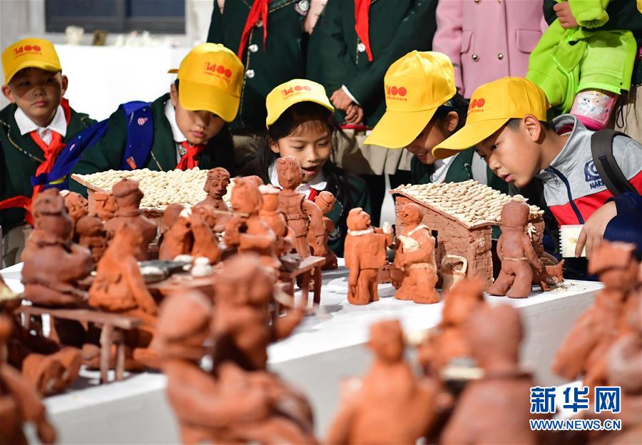 10月21日,小朋友在耀瓷小镇创意园区内参观陶塑作品。 10月21日,纪念耀州窑创烧1400周年活动在陕西省铜川市耀瓷小镇开幕。系列活动中面向少儿的活动内容丰富多彩,吸引了众多小朋友和家长前来参观体验。 新华社记者邵瑞摄