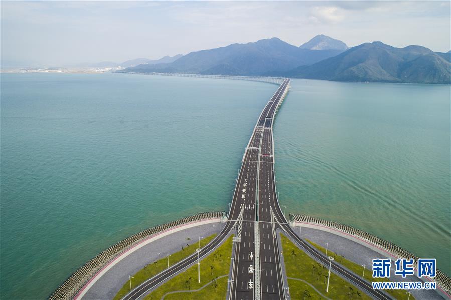 港珠澳大桥香港段(10月13日无人机拍摄)。 即将于10月24日通车的港珠澳大桥跨越伶仃洋,在香港、珠海和澳门三地之间架起一条直接陆路的通道。港珠澳大桥香港段由东端的香港口岸人工岛和向西连接大桥主体的12公里香港接线组成,是这一超级跨海通道的重要组成部分。 新华社记者吕小炜摄