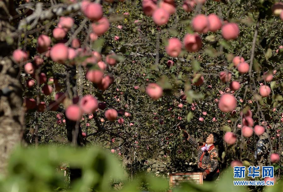 10月23日,内丘县岗底村果农在果园采摘苹果。