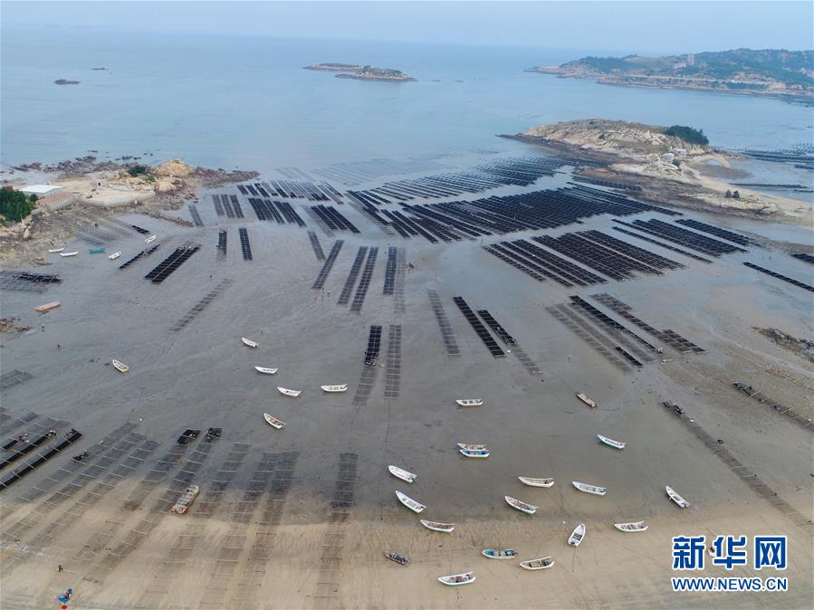 福建莆田蒋山村的千亩紫菜种植基地(10月24日无人机拍摄)。 新华社记者姜克红 摄