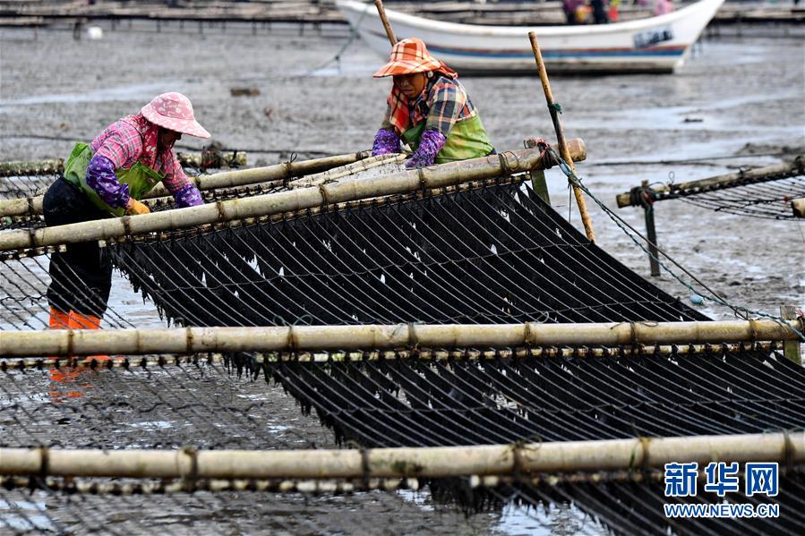 10月24日,福建莆田蒋山村村民在收获紫菜。 新华社记者张国俊 摄