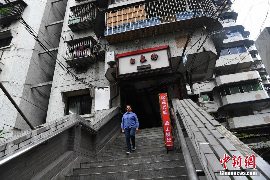 第1层通往下望龙门车站,紧连长滨路;第10层出口通往白象街;第15层出口通往解放东路。中新社记者 陈超 摄