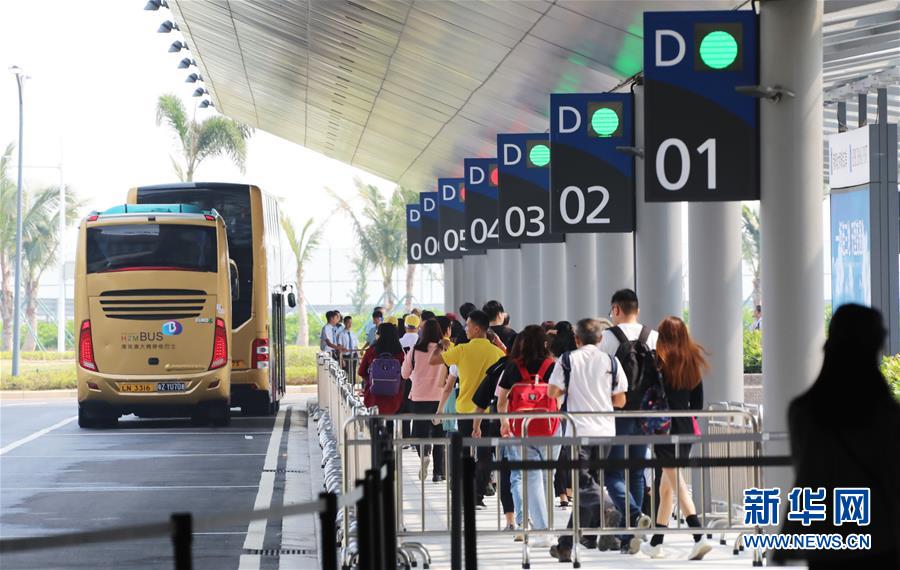 在珠海,旅客等乘港珠澳大桥的穿梭巴士前往香港(10月24日摄)。