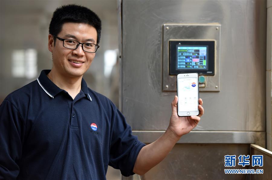 贵州省仁怀市茅台镇茅台酒厂茅台生产管理部工艺员在展示大数据车间采集系统和生产管理手机应用(10月23日摄)。 重阳节后,位于赤水河畔的贵州省仁怀市茅台镇的各个白酒厂进入酿酒忙碌时节。酿酒工人将糯高粱放入酒甑内蒸煮,按照踩曲、拌料、摊凉、堆积等传统工艺进行酿酒,酿酒车间一派繁忙。 据了解,茅台镇传统工艺酿造酱香型白酒,需经过九次蒸煮、八次发酵、七次取酒,整个酿酒过程一直要持续到次年农历八月底。 新华社记者 黄晓勇 摄