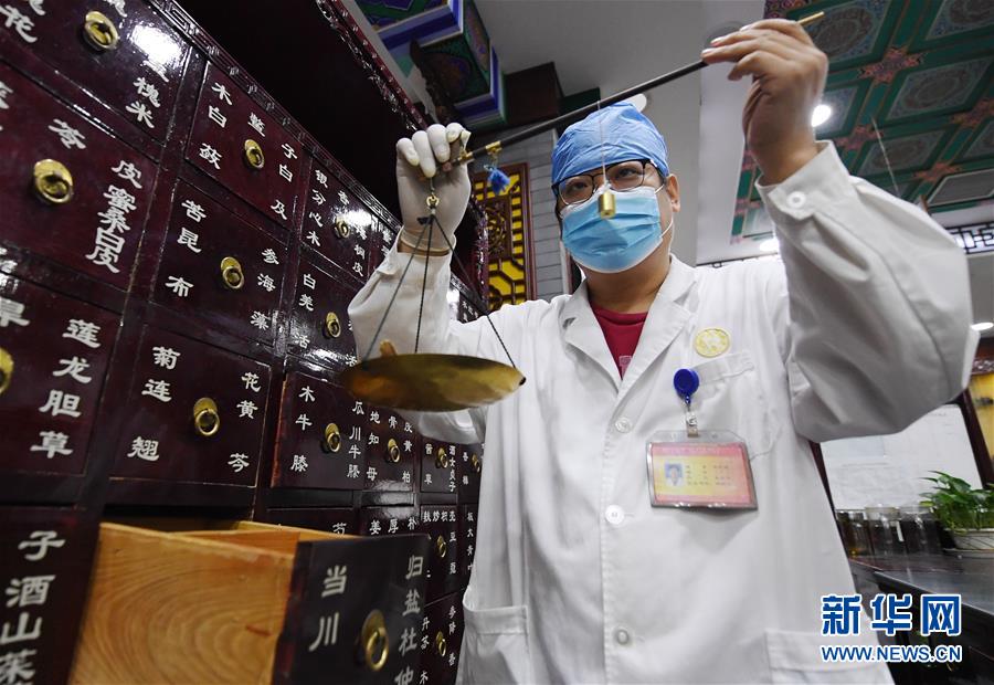 10月25日,工作人员在位于北京大栅栏的同仁堂抓药。 新华社记者 张晨霖摄