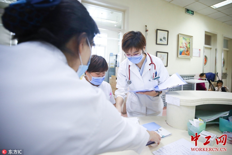 2018年10月23日,清晨8点和傍晚5点是医生交接班的时间,在这个过程中,他们把每一位患儿的体温、出入量、各种病情变化、重要的化验检查结果、前一班采取的措施和下一班需要关注的重点等等都进行详细而谨慎的交待,再根据每一个病人的具体情况制定下一步的诊疗方案。 (图片来源东方IC,请勿转载)