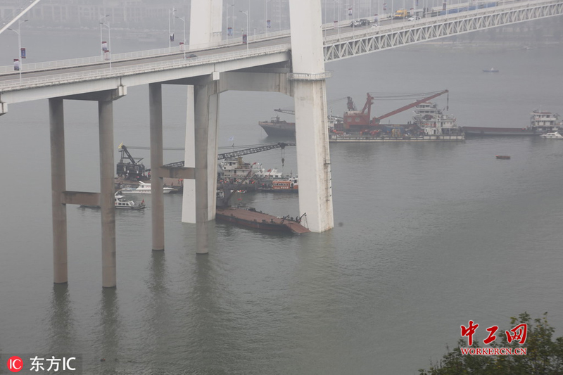 2018年10月30日,重庆万州公交车坠江事故打捞持续紧张有序进行中。(图片来源东方IC,请勿转载)。