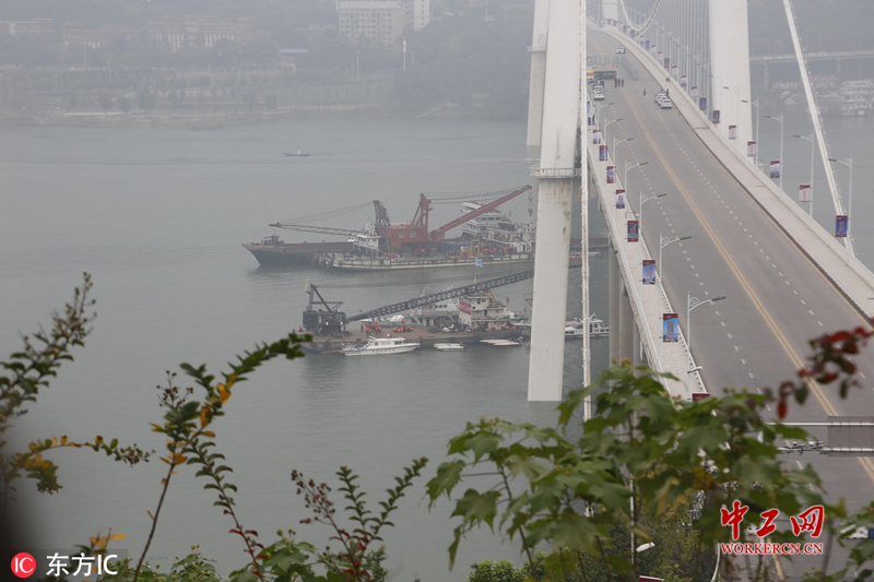 2018年10月30日,重庆万州公交车坠江事故打捞持续紧张有序进行中。(图片来源东方IC,请勿转载)