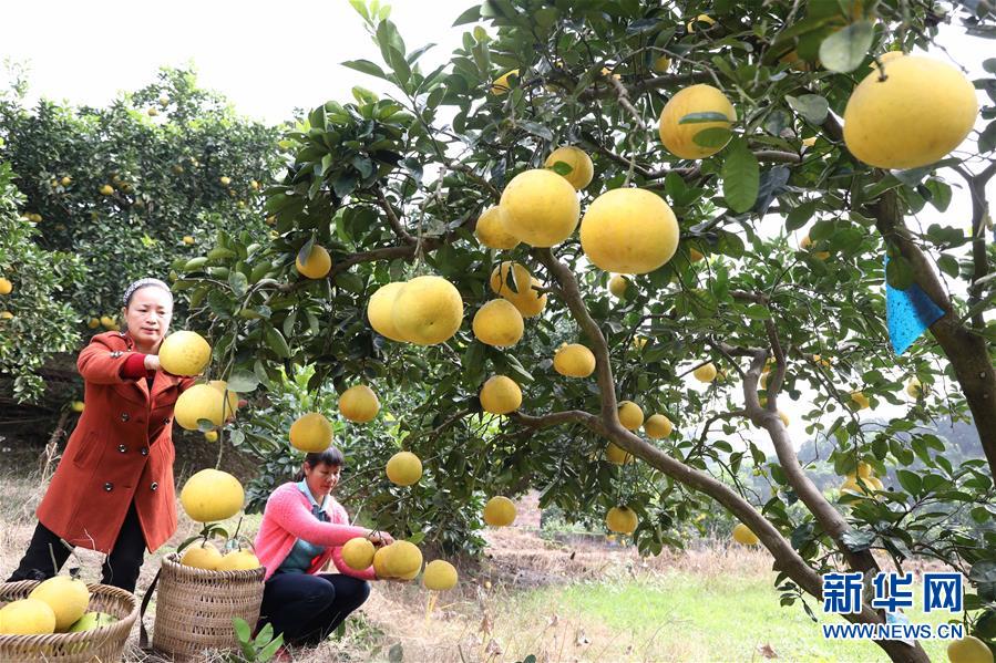 10月29日,重庆梁平区合兴镇龙滩柚子专业合作社的农民在采摘柚子。 新华社发(刘辉 摄)