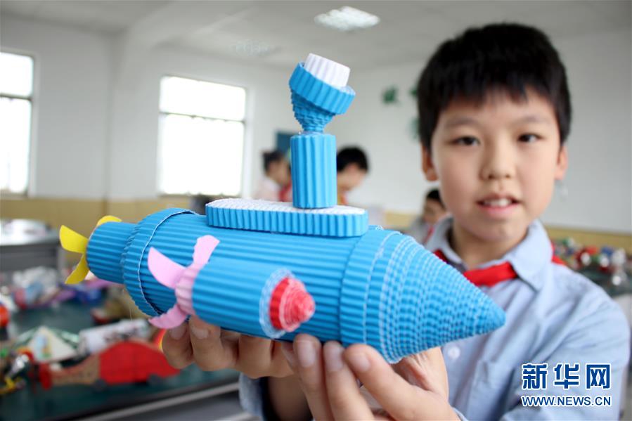 10月31日,江苏省苏州市平江实验学校的学生展示利用废旧物品制作的创意模型。