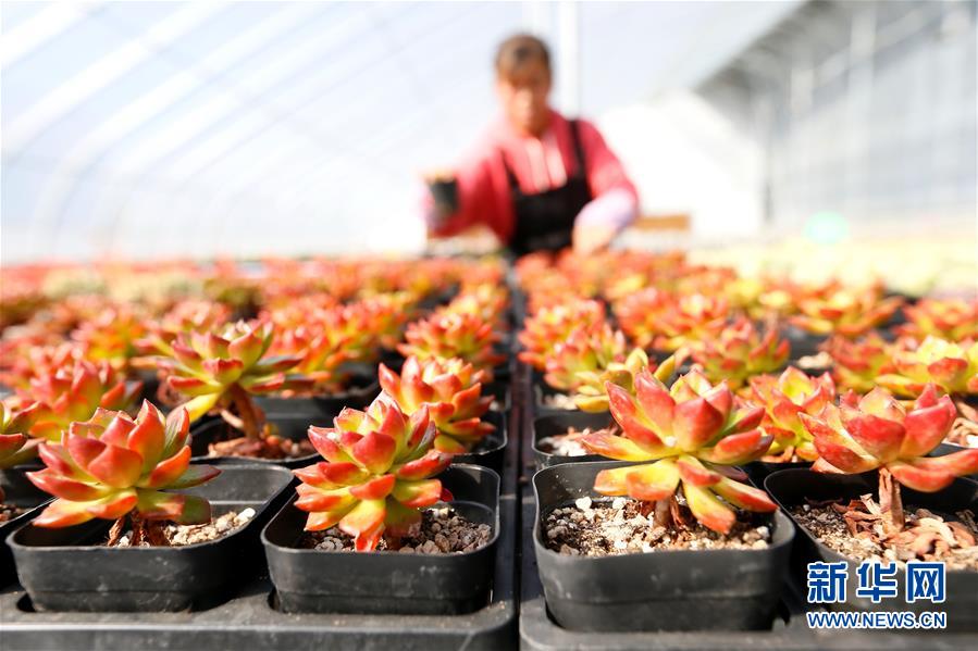 10月31日,山东青岛市即墨区灵山镇中河北村的农民在大棚里管理多肉植物。新华社发(梁孝鹏 摄)