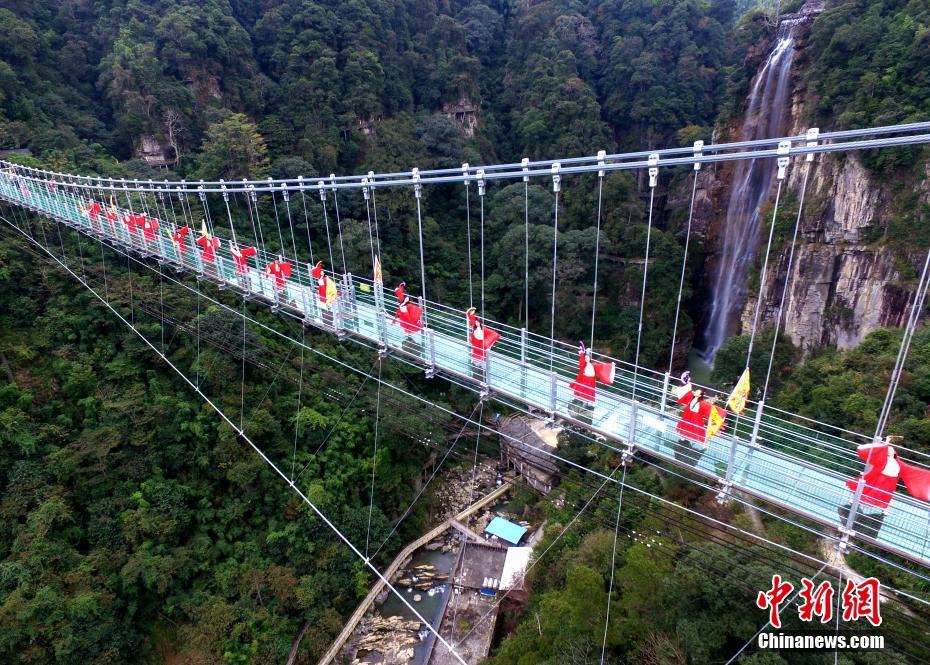 188米高空玻璃悬桥上 古装“侠女”翩翩起舞