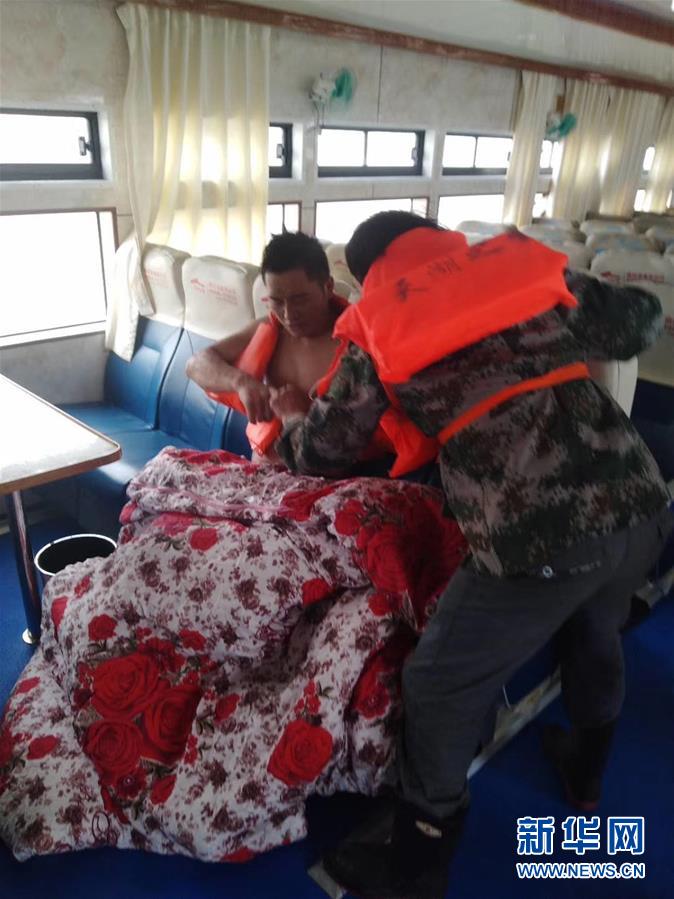 11月1日,救援人员将一名被救起的船员转移至船舱休息。 据福建海事局消息,10月31日20时30分,“闽连渔运60059”在福建宁德沙埕口附近水域失联,16人遇险。经联合搜救,截至11月1日18时,已有10人获救,2人遇难,另外4人失踪。 新华社发